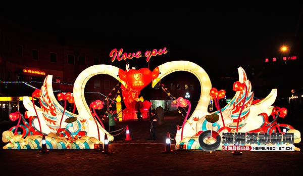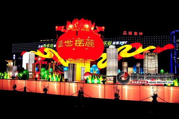 (1月7日晚,“福满星城、光耀潇湘”2011第十届岳麓迎春灯会在河西大学城锦绣潇湘文化创意产业园进行试灯。 图/潇湘晨报滚动新闻记者 殷建军)
