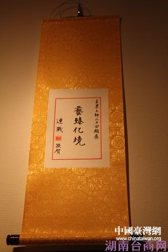 王农老先生告诉记者,“情牵两岸,落笔生花”的主题,是徐悲鸿纪念馆定的,字是徐悲鸿夫人、我的师母廖静文女士写的。他说,我是徐悲鸿的学生,师母所题写主题的含义,也正是我心中所愿的事。