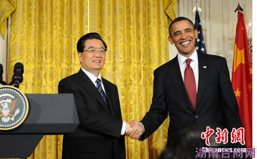 当地时间1月19日,中国国家主席胡锦涛同美国总统奥巴马在白宫共同会见记者。 中新社记者 吴庆才 摄