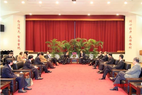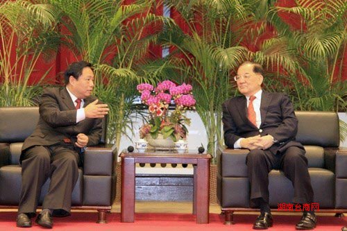 中华全国台湾同胞联谊会会长梁国扬一行,1日在台北拜会了中国国民党荣誉主席连战。梁国扬向连战介绍了全国台联的有关情况以及在台北举行的“2010中国国粹油画艺术精品展”。连战表示,全国台联梁国扬会长一行,不但是跟台湾有历史渊源,还有血缘、人缘、地缘。两岸也本来就是同根同源,都是中华民族一分子,不能忘本。希望全国台联诸位能常回台湾走一走,看一看。 (中国台湾网 田云鹏 摄)