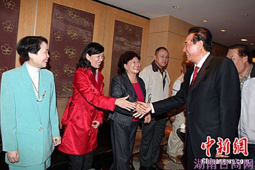 2月25日中午,海协会会长陈云林甫抵嘉义,便在下榻酒店与当地近20位基层民众茶叙。这些民众2年以前游览福建武夷山,与陈云林巧遇,当面邀请他来嘉义,一句客气话未料成真。图为陈云林入场后,与嘉义乡亲一一握手。中新社记者 董会峰 摄