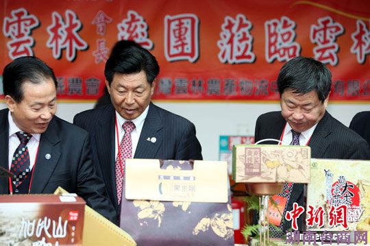 2月26日,海峡两岸关系协会会长陈云林率经贸团参访台湾云林县,受到当地农会的热情欢迎。图为随团的中粮集团董事长宁高宁(右)、中国远洋运输集团总裁魏家福(中),在观看云林特色农产品。中新社记者 董会峰 摄 来源:中国新闻网
