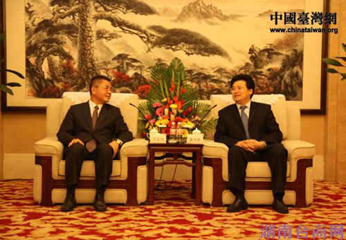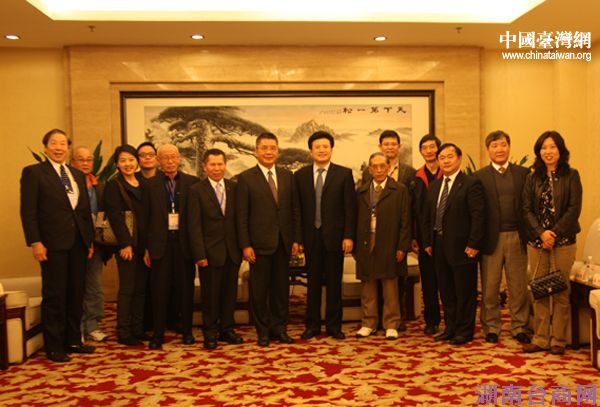 株洲市委常委、副书记龚凤祥于9日晚会见了出席株洲市台协成立大会的部分台湾嘉宾,全国台企联常务副会长叶宏灯、株洲市台资企业协会会长李秀娥等参加了会见。(中国台湾网 杨永青 摄)