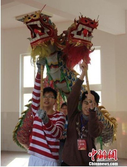 “扎马步”、“踢腿冲拳”、“舞龙”,12月25日,参加2011年海外华裔青少年“中国寻根之旅”冬令营湖南营的近150名华裔青少年,体验了一堂独特的中国武术和中国民族舞蹈课。