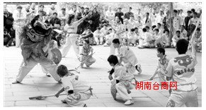 为台南大学的金狮阵表演