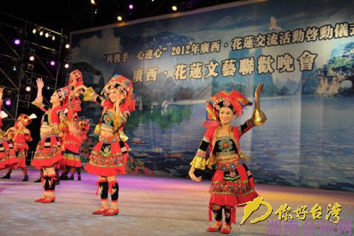 来自广西的演员们为花莲同胞表演舞蹈《绣缘》(你好台湾网 许大为 摄)