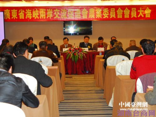 中国台湾网12月23日佛山消息 日前,广东省海峡两岸交流促进会农业委员会(简称农委会)在佛山召开了广东省海峡两岸交流促进会农业委员会第二届会员大会暨理监事就职典礼。广东省政协副主席、促进会名誉会长陈蔚文,省台办主任、促进会会长陈国兴,省台办副主任、促进会常务副会长张科,副会长白瑞秋、方立群、陈永德、蔡信典,省、市、区相关单位及农委会全体会员共250多人参会。