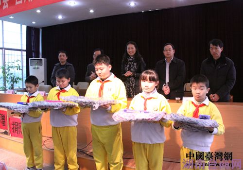 西湖社区贫困家庭学生代表接受捐赠。(贵阳市台办 王康 摄)
