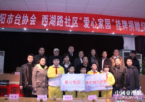 中国台湾网12月19日贵阳消息 日前,贵阳市台协会南明区西湖路社区“爱心家园”挂牌成立。贵阳市委统战部副部长、市委台办主任李静,贵阳市委台办副主任刘筑琪,南明区委常委、组织部长杨俊基及西湖路办事处相关领导等出席了挂牌及捐赠仪式。