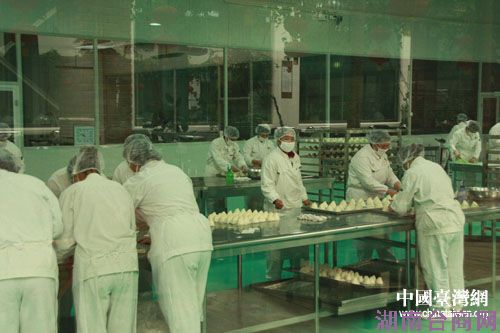 生产车间中,正在精心制作手工面点的工人们。(中国台湾网 王君飞 摄)