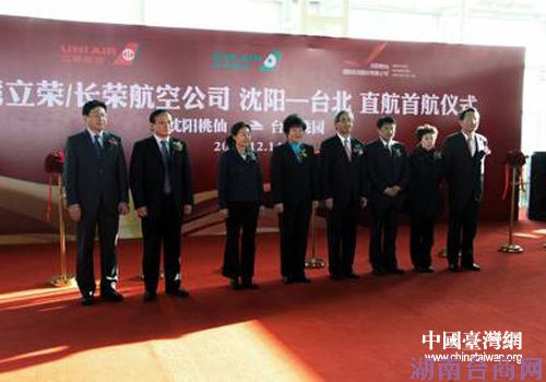 中国台湾网12月19日沈阳消息 日前,台湾立荣—长荣航空开通沈阳—台北航线。辽宁省机场管理集团公司于沈阳桃仙国际机场举办欢迎仪式及首航仪式。