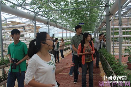 采访团记者兴致勃勃地走进现代农业展示馆。(中国台湾网 王君飞 摄)