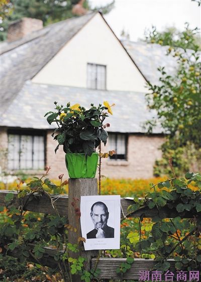 周四,当乔布斯去世的消息传遍全世界,这两辆车也开走了,屋侧的人行道上摆满了花圈、蜡烛与苹果,每个苹果都被小心翼翼地咬去一口。