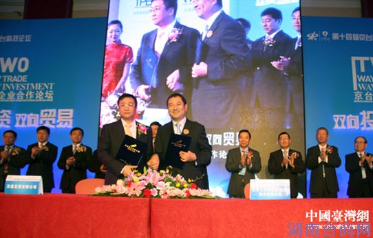 论坛上,京泰发展有限公司与北京王府井百货集团有限公司签署合作意向。(中国台湾网 王思羽 摄)