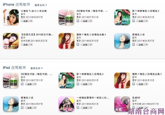 在App store的应用软件下载排行榜中,经常能看到打着“情色”旗号的应用程序,“百部情色极品都市实录”、“有声情爱经典”等软件长期在排行榜中占有一席之地。而直到今天,在下载排行榜的前一百位中,至少还有两到三个应用程序被怀疑与色情有关。