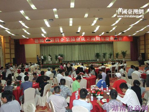 中国台湾网6月27日德阳消息 6月24日,德阳市台资企业协会在德阳市太平洋酒店举行成立两周年庆典大会,德阳市委书记李向志,四川省台办副主任钟远超,全国台企联常务副会长、成都市台商协会会长高锦乐,绵阳市台商协会会长郑国川,西南、西北及沿海各地台商协会负责人,以及德阳市各县(市、区)相关负责人等近200人出席庆典大会。