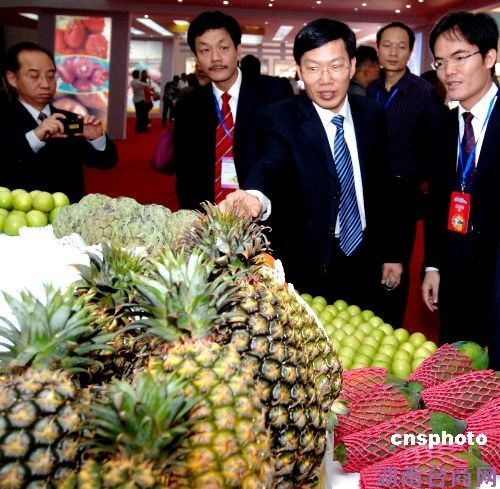 资料图:2008年11月19日,第十届海峡两岸(福建漳州)花卉博览会、二00八年台湾农产品博览会进入第二天。在台湾农产品博览会展区通过两岸“三通”路径登陆福建漳州的十多种台湾原产地水果,吸引了众多来宾和民众的目光。