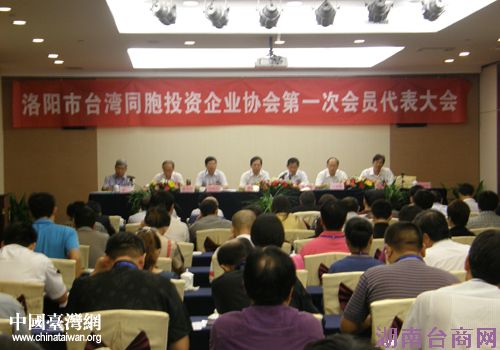 中国台湾网9月5日洛阳消息 9月4日,洛阳市台湾同胞投资企业协会成立大会暨第一次会员代表大会在洛阳市华阳国际大饭店隆重召开。省台办副巡视员郭俊虎、洛阳市政协副主席李良龙及市台办、市民政局等相关部门负责人出席大会。