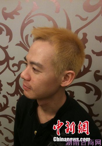 林展鸿为纪念青春的最后一次染发。(林展鸿供图) 台湾岛内白领西进大陆,一路打拼,遇到压力在所难免,但他们用自己的生活方式和态度,寻找自己的小幸福。