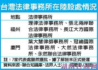 台湾法律事务所在大陆设办事处情况一览。 图片来源:台湾《经济日报》
