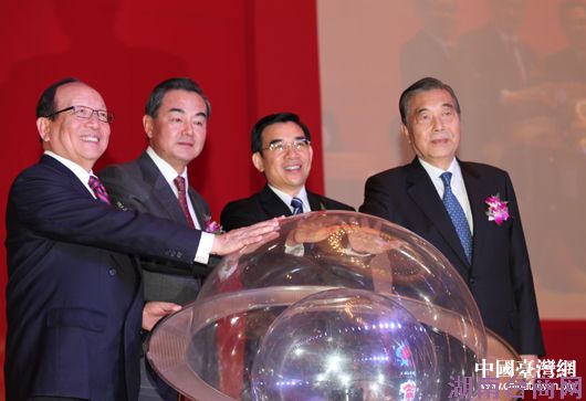 中台办、国台办主任王毅,北京市委副书记、代市长王安顺,中国国民党副主席蒋孝严与台北世贸中心董事长王志刚共同启动开幕式。(中国台湾网 王思羽 摄)