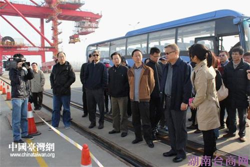 在岳阳城陵矶港口考察,陈良沛理事长当了解到城陵矶港口是首批对台开放直航港口,但至今岳台两地没有直航这一情况时说,湖南物产丰富,又有直航便捷,回台后,一定着力此事,争取早日实现岳台两地港口直航。