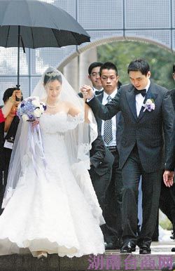 台湾《联合晚报》报道,宏仁集团总裁王文洋之子王泉仁迎娶岛内“首都客运”千金李晶晶,两位新人约在上午10时15分许坐上礼车,走出室外时,亲友替李晶晶撑起一把大黑伞,外界臆测可能是新娘已怀有身孕,但情况是否如此不得而知,在场新娘亲友被媒体问及,都摇头笑而不答。