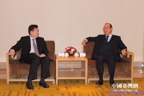 张笑东与中国国民党副主席林丰正亲切交谈。(图片来源:安阳市台办)
