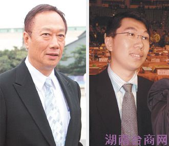 鸿海董事长郭台铭(左)的长子郭守正(右)重返鸿海体系,出任三创数字公司董事长,并主导“台北信息园区”开发案。 《联合报》资料照片