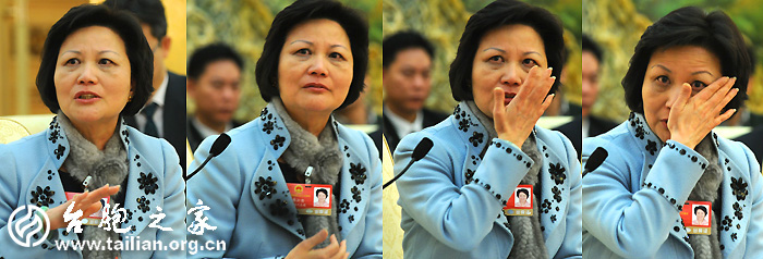 3月10日上午,全国人大台湾代表团的代表在人民大会堂台湾厅审议政府人大常委工作报告,陈云英代表在发言中,呼吁进一步加强两岸交流,深化两岸合作,当谈及自己家庭时,不禁潸然泪下。她期盼海峡两岸能够早日实现和平统一,亲人们不再骨肉分离。