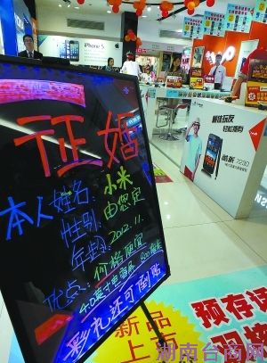 小米的时尚营销一直为商家所称道。图为广州一家商城为小米手机打出雷人“征婚启事,彩礼倒贴”的广告吸引顾客。