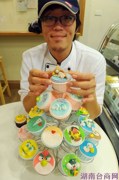 从小失聪的烘焙师傅郑易嘉(图)座落于台湾师范大学的店面开张,5坪不到的空间里,装满了郑易嘉对杯子蛋糕的想象,琳琅满目的花样,都是他的作品。 (图片来源:台湾“中央社”)