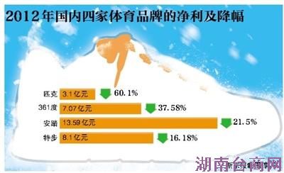 不只是特步,此前发布财报的安踏、361度、匹克业绩均现滑坡。匹克去年净利润降60.1%,361度去年净利润下降接近4成,安踏净利润下降了21.5%。此外,李宁去年底曾发布公告称,预计公司将录得2012财年大幅亏损。这是2001年来李宁业绩首现亏损。