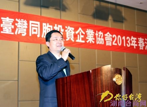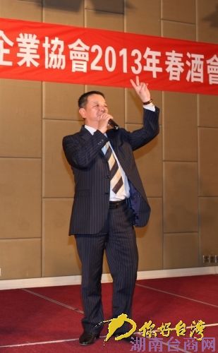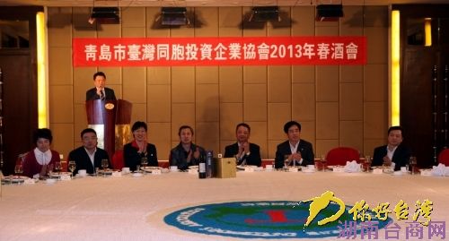 你好台湾网青岛3月12日消息 (通讯员 苏彦) 加强联谊、喜迎新春。青岛市台湾同胞投资企业协会3月8日晚在青岛鑫江希尔顿逸林酒店举办2013青岛台商迎春酒会。青岛市台企协会会长官俊博,荣誉会长朱瑜明,名誉会长许利雄,监事长黄清莲,常务副会长兼秘书长马玉厚、常务副会长张新政、林廷烈,副会长陈素真、许瑞钟、徐志诚、王锦城、林先哲、林宪周、林恒毅、蔡玉全、吴婕、李万昌及全市台企协会会员320多人参加了酒会活动。