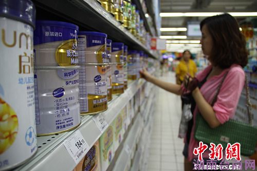 香港限奶令的实施还未满月,但内地奶粉市场却早就做出了反映,业内人士预计今年下半年我国奶粉将迎来新一轮涨价潮。中新社发 杨华峰 摄