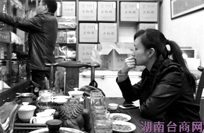 3月25日,两位消费者在店铺内挑选茶叶。当天,记者在上海大型茶叶市场——天山茶城走访发现,今年龙井新茶市场行情“惨淡”,与去年相比,特级龙井价格下降近四成,这与往年新茶热销、天价茶叶频现的状况形成鲜明对比。多位经营者表示:今年前来买茶的单位数量骤减,在很大程度上导致新茶价格走低。