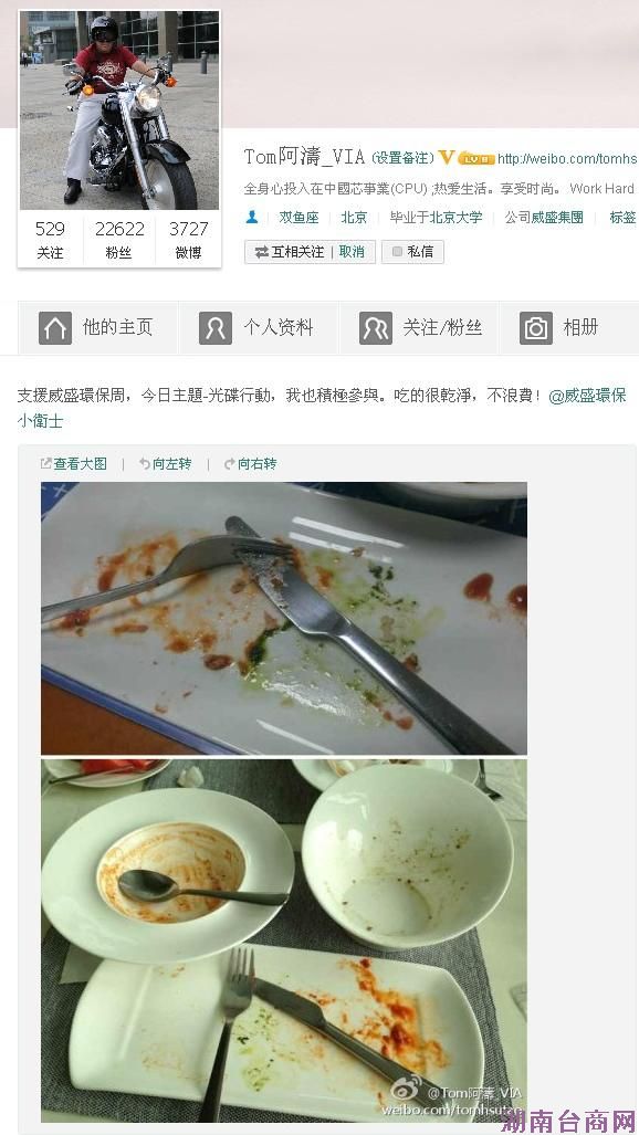威盛集团副总裁、中国区行政长徐涛先生通过微博传达环保行动和理念。(中国台湾网发)