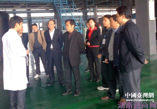 中国台湾网4月12日永兴消息 4月11日上午,湖南省台办副巡视员左新良、郴州市台办主任邓武魁等一行8人,到永兴县考察调研台资企业。考察组一行在永兴县委常委、组织部长、统战部长李亮学等陪同下,到永兴县台资企业――永兴元泰应用材料有限公司进行了现场考察调研,并在永兴元泰公司召开了座谈会,听取了元泰公司发展情况介绍,以及县对台工作情况汇报。