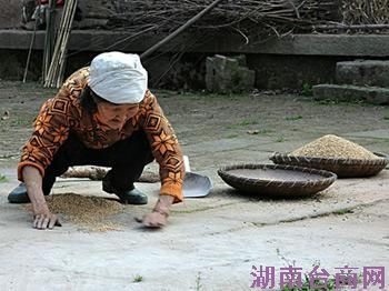 孙文贤告诉记者,当地土壤肥沃,农民种植水平高,只要风调雨顺,一亩地早晚两季的总产量便可达到一吨以上。然而,与高产量并存的却是高损耗。由于缺少晒坪和仓储条件,加上人工吃紧,每年“双抢”的15天时间里,尽管孙文贤忙到每天只睡两个小时,仍然无法在这么短的时间里将自己几十万斤稻谷全部晾晒完毕。