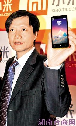小米手机24日正式进军台湾市场,图为董事长雷军展示小米手机。(资料图)
