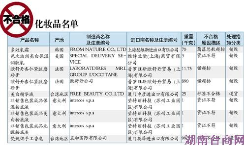 对以上不合格的进口食品、化妆品,口岸出入境检验检疫机构均采取退运或销毁等措施,未进入国内市场。