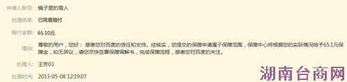 根据最新消息,65.1元保障金已于5月8日晚8点左右,转到当事人韩小姐百付宝账户中,至此韩小姐的保障申请即结束。“当时发起投诉,只是为了解解气,能够追回这笔钱,我确实感到挺意外。”韩小姐对记者表示:“我认为百度推出的这个政策,确实保护了我们网民的合法权益,今后我可以更放心地去搜索”。另据了解,百度还将向公安部门报备问题网站欺诈具体情况,协同政府部门对问题网站追责。