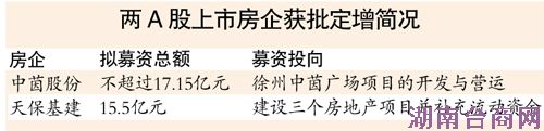昨日晚间,两家地产公司中茵股份、天保基建发布公告,称其非公开发行A股股票申请获得证监会通过。至此,地产再融资正式开闸。