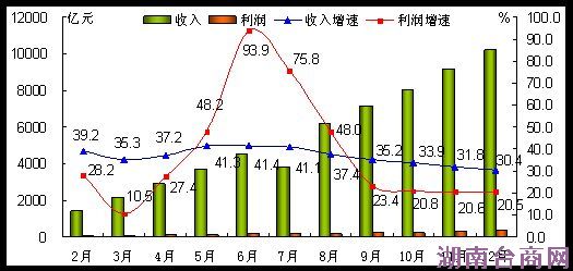 2013年以来,在市场需求快速增长拉动下,我国通信终端设备制造业经济效益保持较快增长。1-12月,行业共实现主营业务收入10233亿元,同比增长30.4%;实现利润总额355亿元,同比增长20.5%;行业收入增速高于电子制造业平均水平20.0个百分点;行业平均利润率达到3.5%,低于电子制造业平均水平1.0个百分点,效益质量还有待提升。