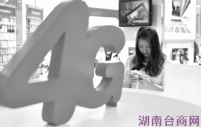 昨天,中国联通正式启动4G商用,一位顾客在联通4G体验厅里体验4G手机。