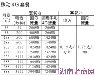 此前,中国移动和中国电信都公布了4G业务套餐,不过中国电信由于只公布了数据卡业务套餐,尚无综合套餐推出。对比中国移动和中国联通的4G套餐发现,联通最低的入门档位为76元,而移动的4G套餐门槛从商用之初的128元降至了58元。