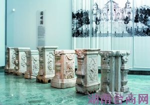 据黄怒波介绍,这7根柱子大概1米多高,是汉白玉材质,外面有雕花造型,由于年代久远加上跨国运输,外部有些磨损。