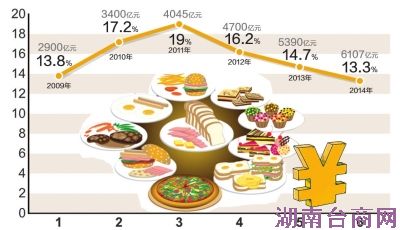根据商务部监测,马年正月初一至初七(1月31日至2月6日),全国零售和餐饮企业实现销售额约6107亿元,比去年春节增长13.3%。结合近6年的春节数据来看,尽管零售和餐饮企业的销售额呈逐年上升态势,但是同比增幅在2011年达到19%的峰值后一路走低。