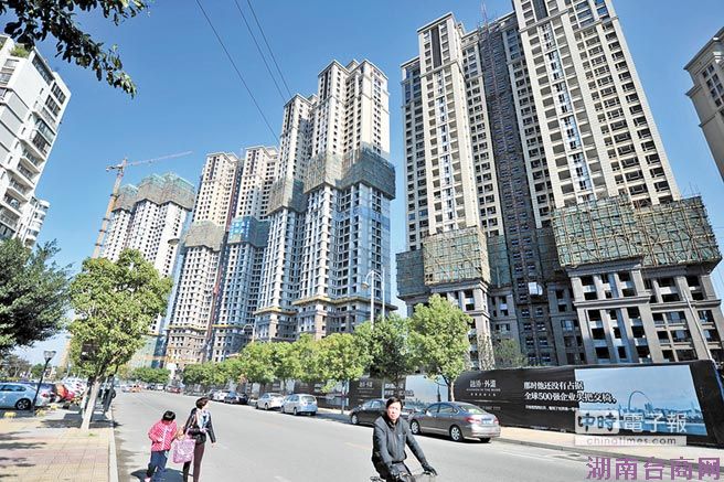 福建省福州市某路段待售的新建大楼。(图片取自台湾中时电子报)