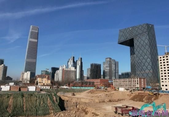 北京CBD正在建设多幢摩天大楼,左侧高楼为国贸三期
